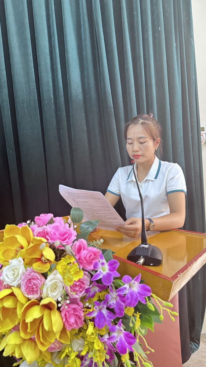 Đồng chí Nguyễn Trung Thành – Chủ tịch Công đoàn trường báo cáo tổng kết các phong trào thi đua