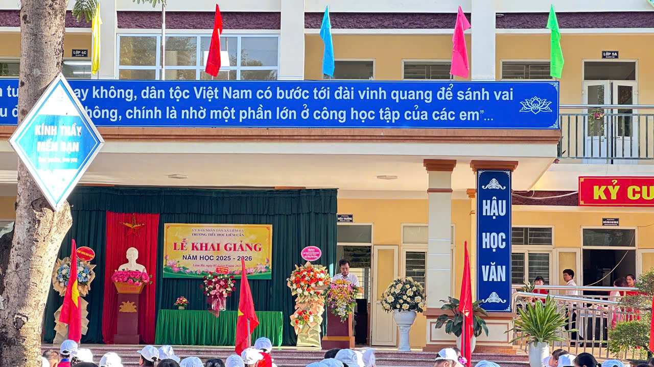 Khai giảng năm nay càng thêm đặc biệt khi diễn ra đúng dịp kỷ niệm 80 năm thành lập Bộ Quốc gia Giáo dục (nay là Bộ Giáo dục và Đào tạo). Thầy và trò Trường Tiểu học Liêm Cần hân hoan hòa chung niềm vui cùng cả nước trong lễ khai giảng qua sóng truyền hình trực tiếp.